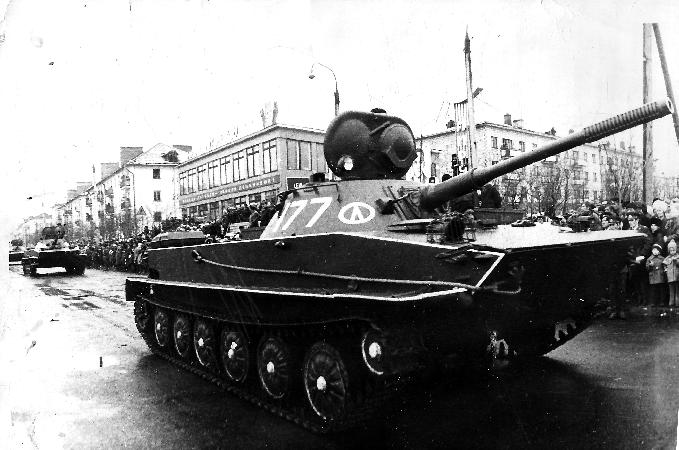 1974 год, парад в Поронайске, плавающий танк