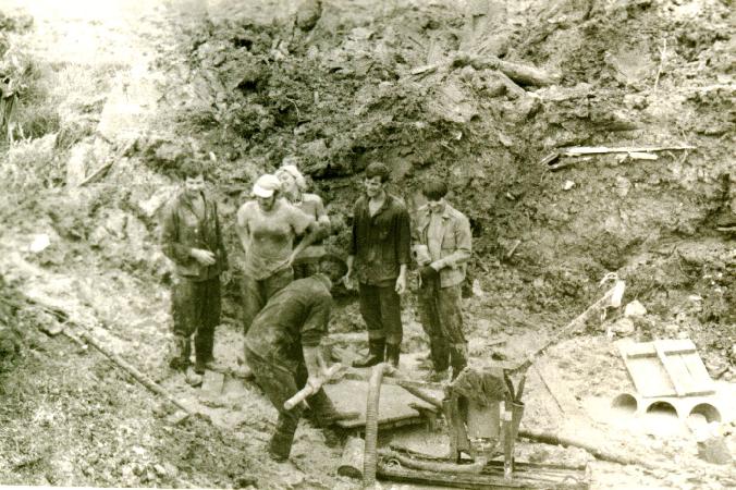 А это наша бригада на рытье котлована и откачке из него воды около трех ферм, не доезжая Ватутино.
